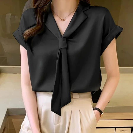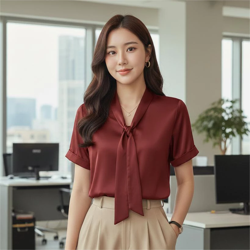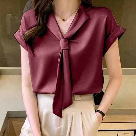 Tingkatkan rasa percaya diri Anda dengan desain kerah pita manis yang memberikan kesan feminin dan berkelas.